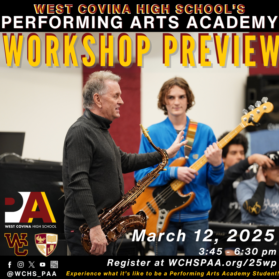 We are thrilled to offer this incredible Workshop Preview opportunity, where prospective students can experience what it’s like to be a part of the West Covina High School Performing Arts Academy!